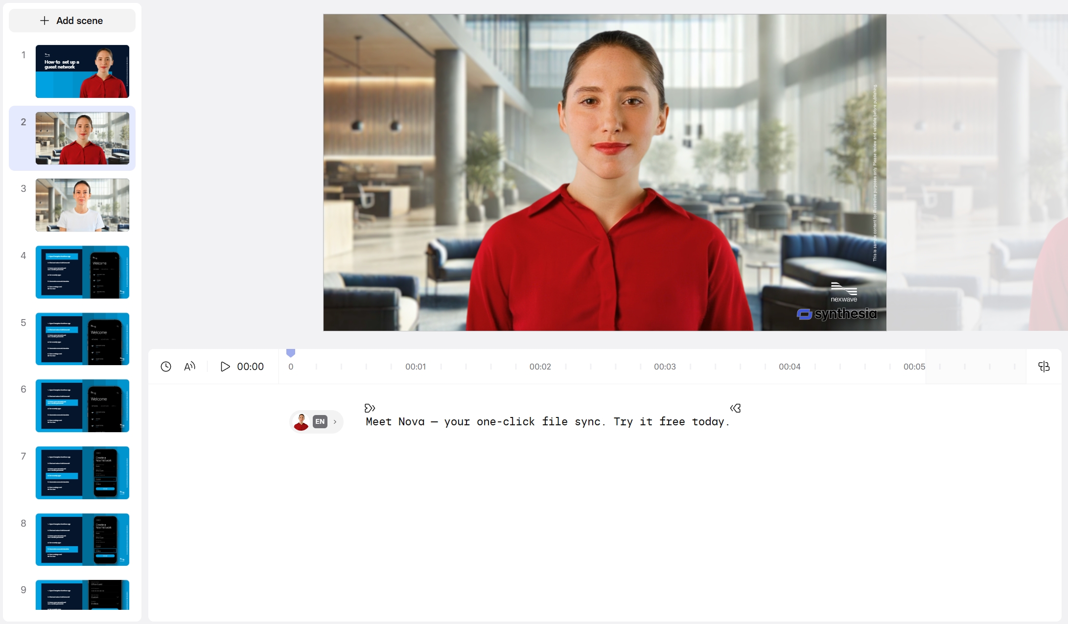 • Script: “Meet Nova — your one-click file sync. Try it free today.”