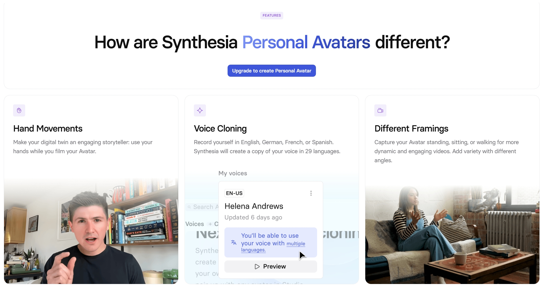 • Large avatar library + option to create custom or studio avatars for a more personal feel.