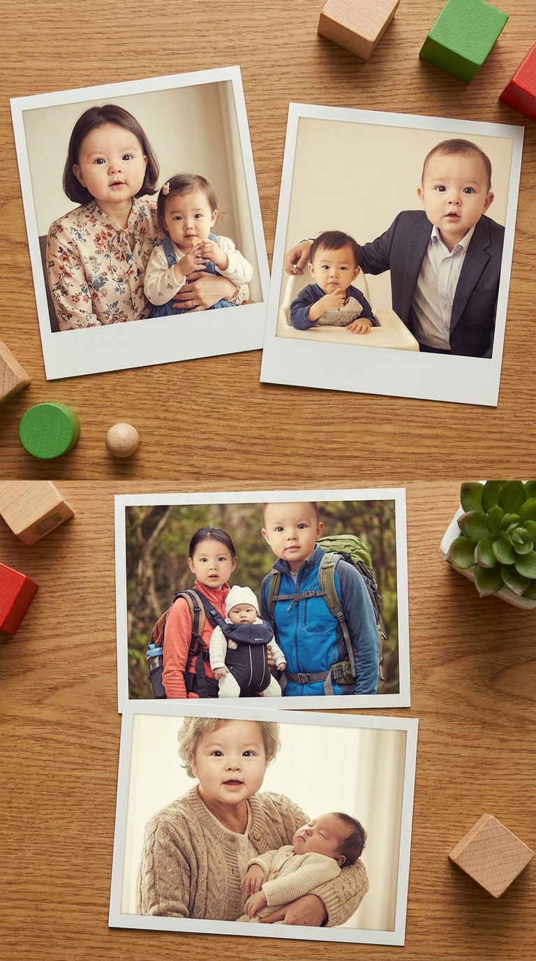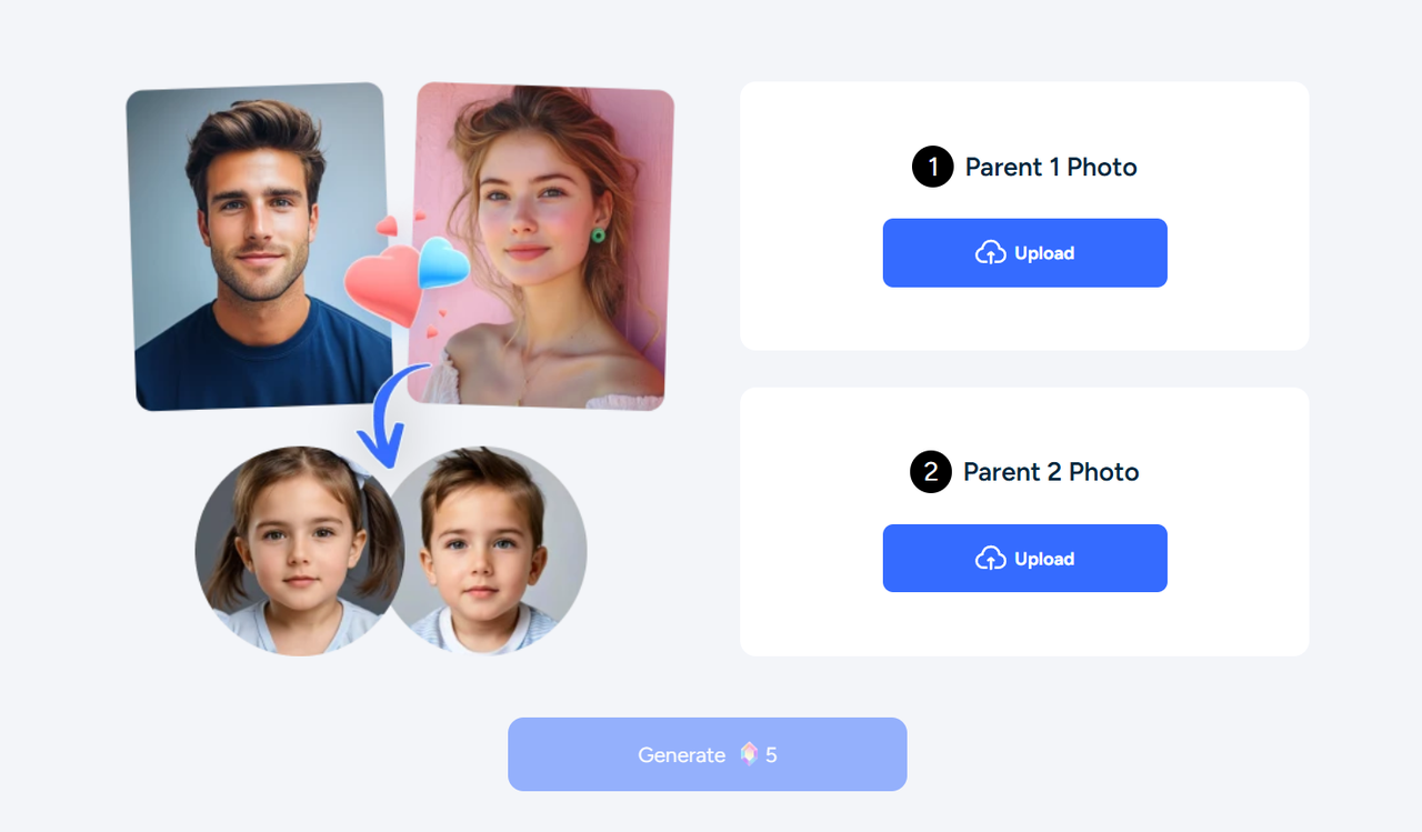 - Upload a parent photo (frontal faces, not extreme expressions).