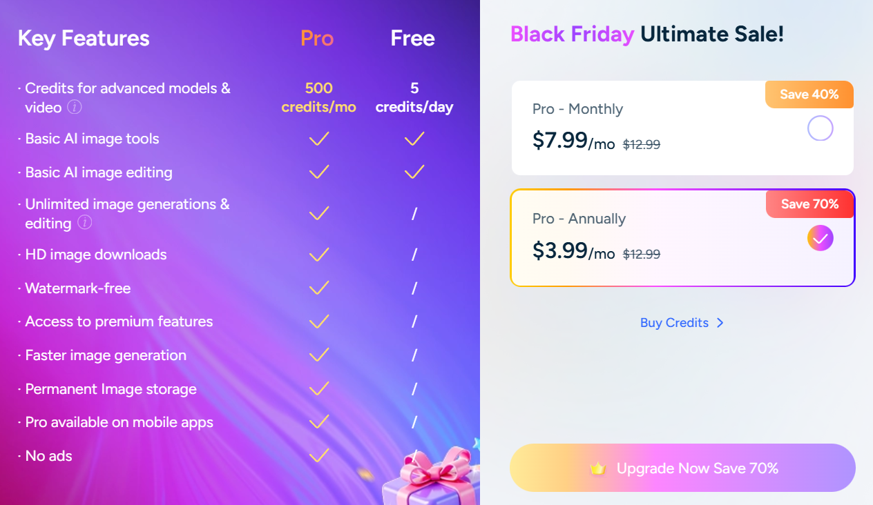 AIEASE leans into a freemium model: a generous free tier for casual use and a Pro subscription for more frequent or commercial workflows. Popular listings show a Pro Monthly and Pro Yearly options. Paid tiers typically unlock unlimited or higher quotas, ad-free use, cloud storage, batch processing, and faster queues. Always double-check current pricing on AIEASE’s site before subscribing.