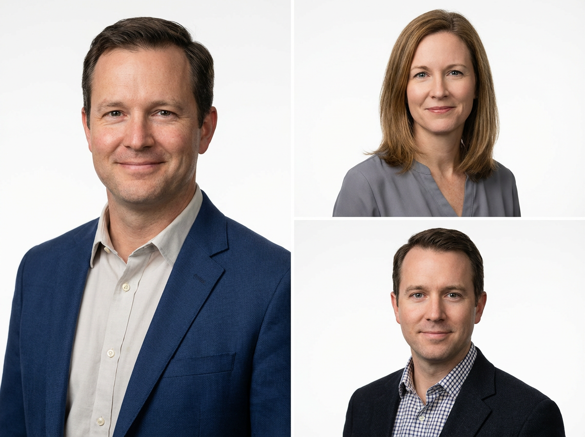 “Studio corporate headshot — softbox lighting, neutral white background, natural skin retouch, slight smile, business casual.”