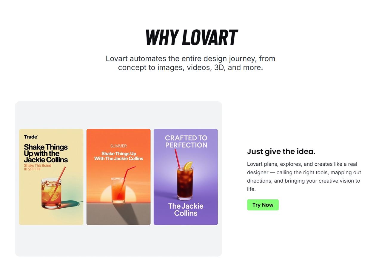 P.S. You can also check out Lovart — AI design agent for generating eye-catching visuals and product-focused artwork, an amazing alternative to Fliki. Use Lovart to quickly create your dreamed artwork to speed up your content workflow.