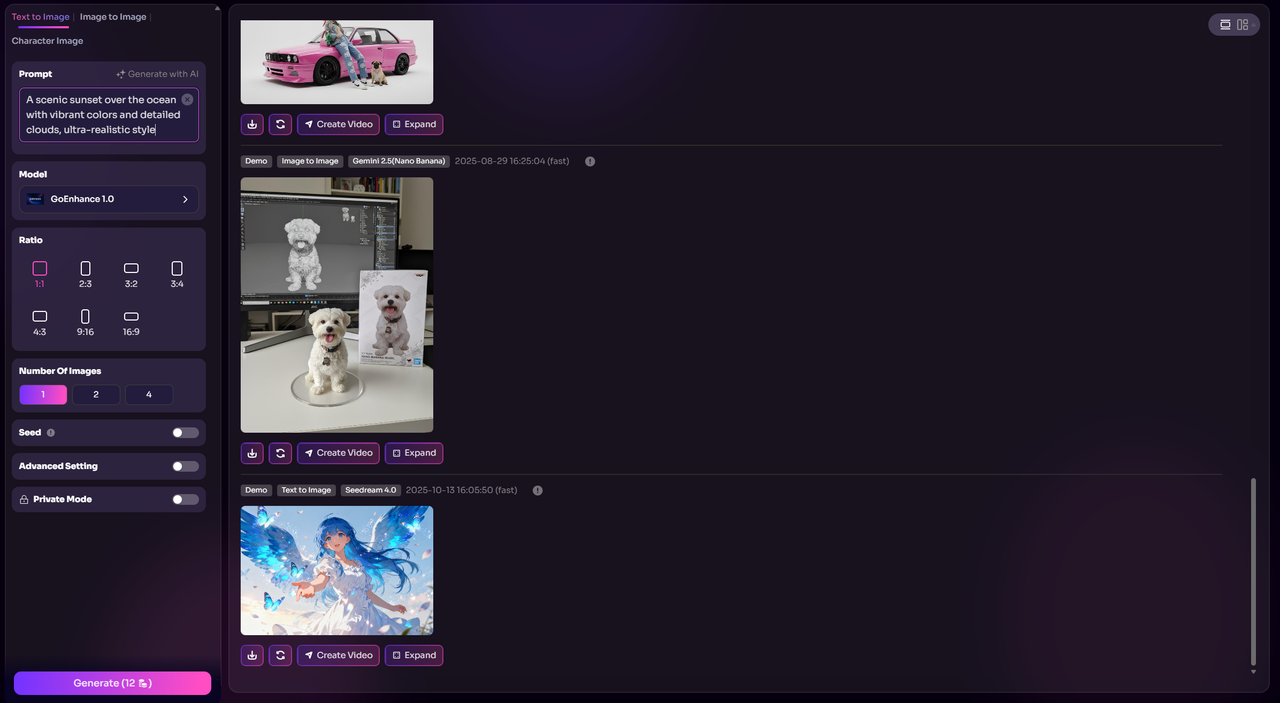 Initial Impressions: GoEnhance AI’s image generation is incredibly intuitive. Users simply upload the image they want to enhance, and then adjust the desired enhancement settings. The system will automatically analyze and generate an improved version. For image generation, users can set parameters such as resolution, tone, and style to get the most fitting visual effect.